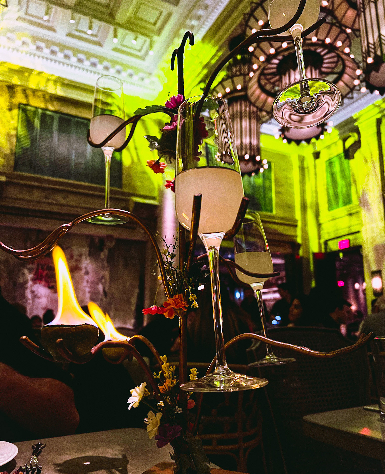 Before we hit the club that's also inside the restaurant, we ordered the daiquiri tree which had flowers draped down the middle and flaming limes.